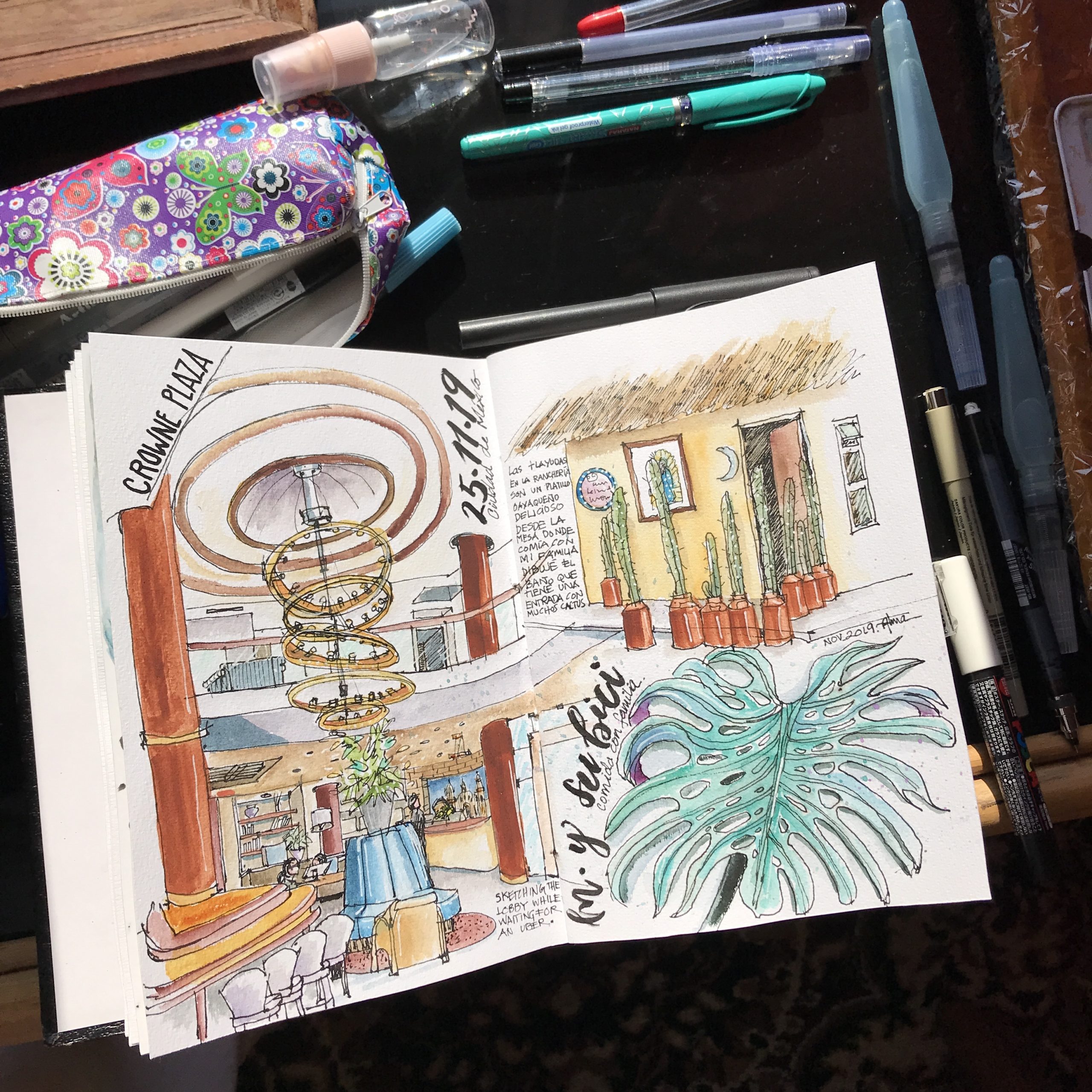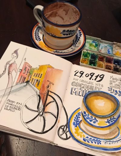 Estas son algunas de mis ilustraciones favoritas de mis diarios de viaje, donde he capturado momentos mágicos y escenas inolvidables de mis aventuras alrededor del mundo. Cada boceto es un recuerdo vívido, una ventana a culturas exóticas y paisajes impresionantes que he tenido el privilegio de experimentar.